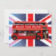 Cette carte customisée Save-the-Date (Save-the-Date Card) est dotée d'un bus vintage Routemaster, un véritable symbole de Londres et d'Angleterre avec le Union Jack en arrière - plan.