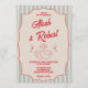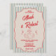 Invitation Red Script Blue Stripes Retro Photo Wedding