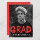 Des invitations urbains branchés de la fête de remise des diplômes de photographie mettent en vedette la photo du diplômé avec "Grad" dans un style typographique en spray rouge. Personnalisez le front en ajoutant le nom du diplômé, le nom de l'école et l'année de fin d'études. La faire-part moderne de graduation s'inverse pour présenter les détails de votre fête de graduation en blanc contre un arrière - plan rouge solide ou la couleur de votre choix.