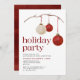 Invitation vos amis ou collègues pour célébrer la saison des Fêtes avec cette simple invitation moderne à votre fête de vacances. Le design présente des boules de Noël rouges et blanches accrochées à une seule branche. Personnalisez avec les détails de votre événement, y compris la date, l'heure, l'emplacement et les informations RSVP.