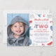 Red White et DEUX étoiles et rayures 2e Carte photo de fête d'anniversaire Conception de l'invitation. Cette conception est destinée lorsque vous ne pouvez pas avoir une fête physique mais que vous voulez toujours célébrer.