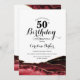 Gate rouge, blanc et or 50e anniversaire invitation de fête. Design élégant et moderne avec aquarelle agate marbre arrière - plan, fausse parties scintillant or et typographie script de police. Carte invitation branchée parfaite pour une célébration anniversaire féminine élégante. Invitations Zazzle imprimées ou téléchargement instantané modèle imprimable numérique.