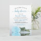 Cette belle invitation au baby shower présente une photo d'un seul rose bleu clair à long tige allongé sur son côté, se réfléchissant dans un bassin d'eau avec vagues et ondulations. L'élégant titre de calligraphie script prête classe et style. Inclut des informations sur le registre des douches et des cadeaux. Une façon idéale de célébrer l'arrivée prochaine d'un nouveau bébé garçon.