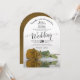 Cette belle faire-part de mariage est ornée d'une photo d'un rose doré à long tige ocre ou jaune moutarde posé sur son côté, se reflétant dans un bassin d'eau aux ondulations et vagues. La typographie présente une élégante calligraphie de script et le libellé est formel, rendant cette invitation à la fois moderne et classique. Le dos est d'une belle couleur dorée tressée. Magnifique façon d'invitation vos amis et votre famille à partager dans votre journée spéciale. Cette conception est optimisée pour la coupe à arc.