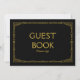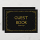 Panneau de mariage élégant et simple de style art déco "Livre d'or, merci de signer", personnalisé avec votre propre texte, avec un cadre art déco doré sur fond noir.