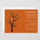 Commencez votre fête avec notre soirée Giving Merci Thanksgiving Dinner Invitation avec un arbre noir élégant avec des coeurs et des points de couleur d'automne sur un arrière - plan orange tangerine. Idéal pour tous ceux qui se réunissent à l'automne.