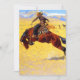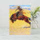 Carte représentant la peinture à l’huile de Frederic Remington, Cold Morning on the Range (1904). Un cow-boy fait le tour d'un cheval brun et rambutant. Un grand cadeau pour les amateurs de chevaux et le Vieux-Ouest.