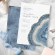 Tous les designs mariages ne sont pas égaux. L'agencement asymétrique des pièces de cet ensemble mariage frappant prouve que ce n'est pas une mauvaise chose ! Des bandes de couleur ondulées dans les tons allant du bleu poussiéreux au beige sablonneux avec un centre de cristal scintillant forment une géode/agate accent sur la plupart des pièces de l'ensemble. L'invitation "Dîner de répétition" mariage présentée ici comprend les détails ci-dessus ainsi qu'un modèle pour ajouter les détails de l'événement et les informations RSVP pour vos invités. L'inverse a un arrière - plan abstrait de coordination qui rappelle la pierre veinée de parties scintillant. Recherchez ID647 pour voir toutes les pièces de coordination de cet ensemble.