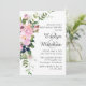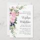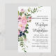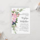 Cette invitation à dîner romantique de répétition présente des roses roses roses rousses rehaussées de feuilles d'oliviers et de branches d'aqua. Le texte gris vient compléter les couleurs douces du bouquet. Les noms de la mariée et du marié sont présentés avec audace au-dessus d'une grande esperluette, ainsi que les détails de la date, de l'heure et du lieu du dîner de la répétition. Tous les détails, y compris la couleur du texte, sont entièrement personnalisables.