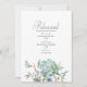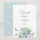 Cette carte de répétition mariage est simple, élégante et remplie d'une variété de fleurs bleues. Personnalisez facilement cette carte avec vos informations. Ce design est offert sur de nombreux autres articles de papeterie et accessoires mariages pour votre événement spécial, particulièrement parfait pour un mariage de printemps ou d'été. Basé sur une aquarelle originale par © Lisa Audit Art. Entourez-vous avec l'art qui fait chaud au coeur.