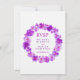 Couronne de mariage simple double face moderne et décontractée avec des pensées et des fleurs de violette aquarelle. Personnalisez avec votre propre nom et détails de réponse. Œuvre et design aquarelle originaux de Sarah Trett pour www.mylittleedenweddings.com