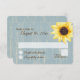 Carte de réponse de mariage rustique avec tournesol de campagne et bois de grange bleu poussiéreux lavé avec un chic rustique en bois de grange et un tournesol jaune vif contrastant.
