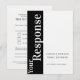 Cartes de réponse de mariage à typographie simple mono noire et blanche. D'autres articles assortis et différentes couleurs sont disponibles. © Création originale par www.mylittleedenweddings.com