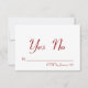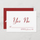 Un audacieux "XOXO" blanc décore le dos de cette réponse élégante rouge et blanche, ce qui la rend parfaite pour un mariage à la Saint-Valentin ou un mariage de Noël. Ce style tendance et moderne est encore amélioré par une simple réponse Oui/Non à entourer.