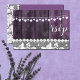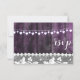 Mariage rustique avec bois, dentelle et coeurs en ficelle - carte de réponse. Conception par Alma Wad. Dessin avant et arrière. Tous les éléments sont imprimés. Cette version est disponible en violet et blanc.