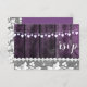 Mariage rustique avec bois, dentelle et coeurs en ficelle - carte de réponse. Conception d'Alma Wad. Dessin avant et arrière. Tous les éléments sont imprimés. Cette version est disponible en violet et blanc.