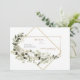 Invitation simple et élégante à la douche nuptiale. Aquarelle Le souffle du bébé. Cadre géométrique. En Personne. Typographie gris et or.