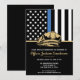 Ce design présente un drapeau de la force de police avec des bandes noires et blanches, ainsi qu'une fine bande bleue. Le badge de police et le texte doré se trouvent au-dessus de tous les détails de la fête pour la retraite de l'agent de la force de l'ordre, du shérif, du capitaine ou du chef en retraite.