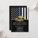 Cette conception comprend un drapeau de la force de police avec des bandes noires et blanches, ainsi qu'une fine bande bleue. Le badge de police et le texte doré se trouvent au-dessus de tous les détails de la fête pour la retraite de l'agent de la force de l'ordre, du shérif, du capitaine ou du chef en retraite.