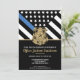 Ce design présente un drapeau de la force de police avec des bandes noires et blanches, ainsi qu'une fine bande bleue. Le badge de police et le texte doré se trouvent au-dessus de tous les détails de la fête pour la retraite de l'agent de la force publique, du shérif, du capitaine ou du chef, les détails de la fête de retraite.