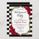 Invitation de la partie de retraite. Elégant blanc noir, rouge design avec faux or parties scintillant. Dispose de rayures et de roses rouges. Parfait pour une soirée de retraite élégante.