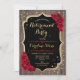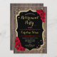 Invitation de la partie de retraite. Design rustique avec parties scintillant en or. Il présente des roses rouges, des caractères stylisés, un motif en bois de grange brun foncé et des confettis. Parfait pour une soirée de retraite élégante. Customisez avec vos propres détails.