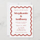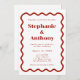 Invitation Retro 1950s Wavy Edge Mariage rouge foncé