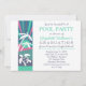 Retro look scène de plage look Graduation Party design. Comprend une scène de coucher de soleil rétro en bleu, turquoise et rose avec des palmiers et une tortue. Idéal pour les soirées piscine et plage. Design par Holiday Hearts Designs (droits réservés).