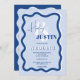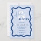 Invitation Retro bleu courbe squiggle ondulée photo mariage