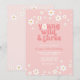 Invitation de Young, Wild et Three Anniversaire inspirée par Retro avec marguerites de style 70's et polices et couleurs boho.