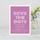Annonce rétro de mise en garde du jour en fuchsia et blanc radieux avec une conception typographique moderne funky. Cette invitation tendance et élégante de mise en garde du jour est facile à personnaliser avec vos détails de mariage. Pour plus d'options de personnalisation, cliquez sur le bouton Personnaliser.