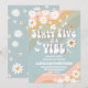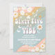 Célébrez dans le style avec cette invitation d'anniversaire inspirée des années 1960, avec des bandes ondulées pastel, des marguerites, des signes de paix et des motifs hippies ludiques. Parfait pour les célébrations importantes, ce design coloré donne le ton pour une fête amusante et nostalgique pleine de paix, d'amour et de bonnes vibrations. Les invités adoreront l'esthétique vibrante du flower power, en faisant un souvenir mémorable pour les 65 ans d'Olivia ou tout événement groovy.