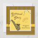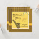 Ces invitations Retro Modern Jazz Engagement Party présentent un saxophone amusant, des notes musicales et un design en verre de vin sur une frontière motif rayé jaune et chocolat audacieuse. Personnalisez l'utilisation du modèle. Cliquez sur "customiser" pour modifier la police et le placement du texte.