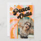 Fun retro hippie vibes photo graduation invitation de la fête! Tourbillonnant lignes de sunburst en rose doux, bleu pastel et orange avec des fleurs super et les mots "Peace Outie" en lettrage rétro. Ajoutez la photo de votre diplômé sur le devant et l'information de la fête de remise de diplômes sur le dos.