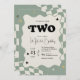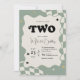Invitation Retro Sage Green Checkered Groovy Two 2nd Birthday