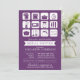 Commencez votre invitation nuptiale de douche de cuisine à la mode outre de la droite avec notre rétro stock l'invitation de wedding shower de cuisine avec une torsion moderne. Notre invitation élégante d'appareils et d'instrument de cuisine comporte un pot, un mélangeur, une échelle de cuisine, un ensemble d'ustensile, un pot de café, des couteaux, une planche à découper, un fourneau et une micro-onde réglés dessus à l'arrière - plan pourpre avec une bannière moderne et à la mode d'accent. Grand pour une douche nuptiale de printemps, d'été, de chute ou d'hiver. Demande faite sur commande de couleur toujours accueillie.