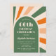 Retro vertes, oranges et pêche retro lunette de soleil cadre d'arche typographie invitation anniversaire. Peut être customisé pour n'importe quel âge !