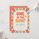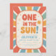 Celebrate your little one's first birthday in bright and cheerful style with this retro-inspired “One in the Sun” party invitation! This playful and colorful design features bold typography, sunshine motifs, and vibrant retro hues that capture the joy of your baby's first trip around the sun. Personalize it with your party details for a fun and memorable celebration.