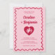 Invitation Retro Wavy Frame Red Pink Cupid Heart Wedding