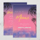 Surprenez vos amies avec cette invitation d'enterrement de vie de jeune fille adorable, avec un fond de ciel nuageux dégradé rose et bleu à l'esthétique des années 80, un texte néon jaune, des palmiers tropicaux et des détails modifiables. Personnalisez-le facilement en cliquant sur l'option "personnaliser".