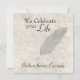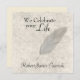 Plume sur effet de pierre — Carré Que vous soyez en train de tenir des funérailles vivantes ou le sillage d'une personne récemment passée, ou de commémorer avec une réunion à un anniversaire, ces invitations carrés font connaître l'occasion à d'autres. Célébrez une vie et partagez des souvenirs spéciaux. L'effet parchemin ou pierre sur l'avant de cette carte a un ton légèrement sépia et présente un motif en plumes peintes dans des tons doux de gris. Entièrement personnalisable, vous remplissez simplement les cases avec les détails personnels d'un invitation personnalisé.
