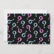 Un motif de points d'interrogation rose et bleu sur un fond noir présenté ici sur une invitation à une fête de révélation de bébé. De nombreuses options de personnalisation disponibles. Choisissez les couleurs de fond, le style et la couleur de police, redimensionnez le motif et ajoutez vos informations de fête. Idéal pour toute future maman !