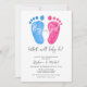 Ces invitations de révélation de genre mignonnes sont décorées de pieds d'eau rose et bleu couleur d'eau bébé. Ils disent "Garçon ou Fille, Qu'est-ce que sera bébé ?" dans la typographie stylisée. Facile à personnaliser. L'oeuvre est de Michele Davies et est vendue exclusivement par Zazzle. Aquarelle originale © Michele Davies.