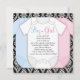 Adorable damas noir avec rose, bleu et blanc bébé chemises un pièce bébé sexe révèle des invitations douche. Ce genre mignon révèle une invitation baby shower est facile à customiser en ajoutant vos détails à l'avant et à l'arrière en ajoutant simplement vos détails d'événement, le style de police, la taille et la couleur de police et le libellé.