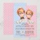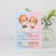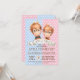 Cartons d'invitation à la révélation du sexe du singe avec de mignons bébés orang-outans garçon et fille à l'aquarelle sur un fond à pois rose et bleu. Ces cartons d'invitation à la révélation du sexe du singe sont facilement personnalisables pour votre événement en ajoutant simplement vos coordonnées. Vous pouvez déplacer ou supprimer le nœud papillon.
