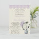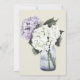 Un bord de dentelle lilas et un bel agencement de Hydrangea fleurit en violet et blanc dans un bocal de verre découvrent ce merveilleux décor de faire-part de mariage pour votre mariage campagnard rustique, chic et français. La disposition de l'hydrangée aquarelle est répétée dans une grande taille à l'arrière du invitation.