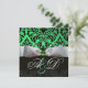 Élégant, classe, unique damas Art Nouveau avec une pierre verte 3D vibrante, facilement personnalisable avec votre texte et vos initiales comme une cérémonie mariage, faire-part nuptiale, doux 16, carte place, enregistrer la date, merci, baby showers, douches nuptiales, fêtes d'anniversaire de quinceanera, Bat mitzvah, douches fiançailles romantiques, noël, vacances, bureau, nouvelles réunions familiales fête de l'année, anniversaires, réunions, diplômes scolaires, concert, récital ou à peu près tout événement que vous souhaitez! com com