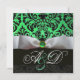 INVITATION RIBBON BLANC EMERALD VERT BLACK DAMASK MONOGRAM