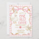 Ribbon Bow One Silly Goose 1er Anniversaire Balloon rose En vichy Invitation