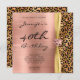 Créez vos propres invitations personnalisables d'anniversaire pour fabuleux 40e anniversaire ou toute autre célébration spéciale. A gauche, en créant de la place pour votre invitation, est un brillant brillant rose or sombre brossé style art numérique graphique. Sur la droite se trouve un graphique brillant or et or rose empreinte de léopard feuille graphique. Les deux blocs sont séparés par un ruban de satin doré jaune, faux à la verticale, avec une image de pierre angulaire en diamant rose teinte. Les bijoux en diamant de luxe brillant, brillant et en strass sont créés avec des graphiques numériques imprimés. Invitations glamour d'or rose, blush, jaune, bronzé, or et or pour son événement spécial.